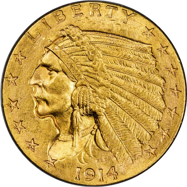 • Gloriously frosted and blazing with golden hue, this 1908 would be common in any lower grade but becomes highly coveted at the gem grade level. An impeccable strike may have brought up all the obverse definition while the eagle's shoulder barely misses perfection. A few stray hairline abrasions left of the throat and of the date represent practically the only surface disturbances.