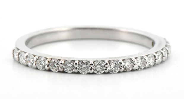 • There is a horizontally set oval brilliant diamond weighing approximately .50 ct. SI clarity, J color with groups of pave set round diamonds on either side weighing an estimated .50 cttw, SI clarity, I color. Ring size 6.75, 2.8 dwt.