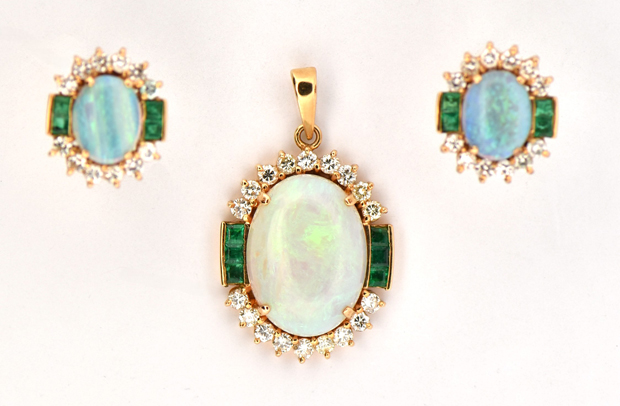 • Lot #227 - 14K Yellow Gold Opal Earring and Pendant Set