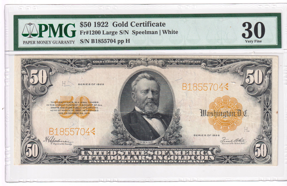 • Lot #86 - 1922 $50 Fr# 1200 - PMG VF-30
