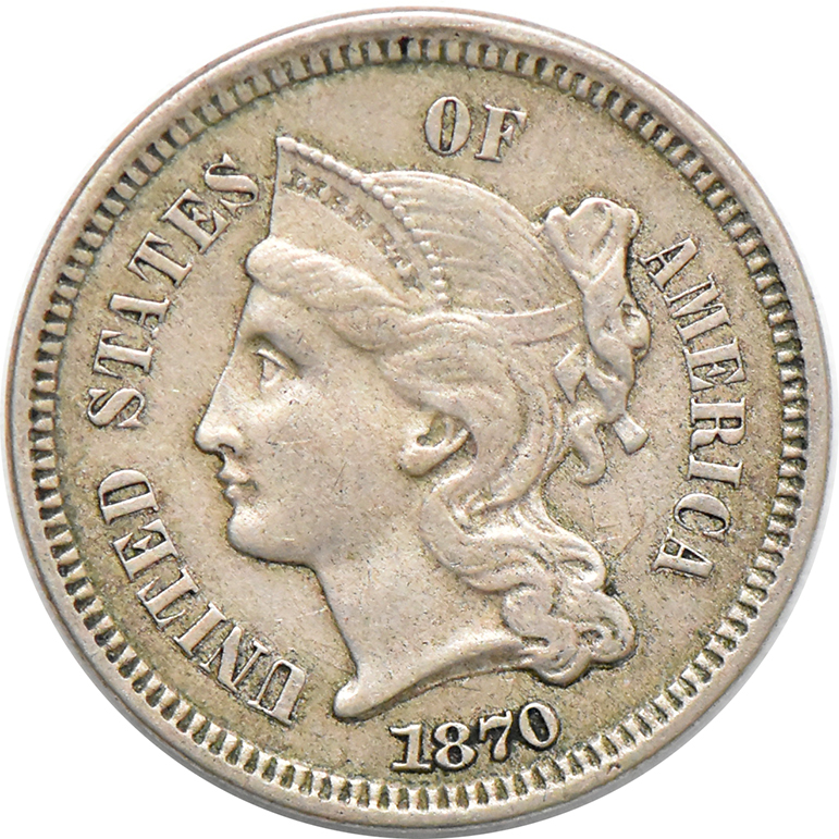Item: 1870 Nickel Three-Cent Piece, AU-53