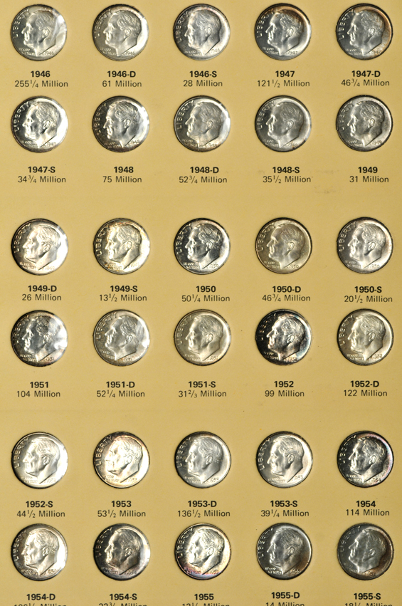 Lot Title: Multiple collections of Roosevelt dimes in albums