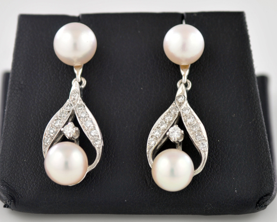 Lot Title: 14K White Gold Diamond and Pearl Earrings