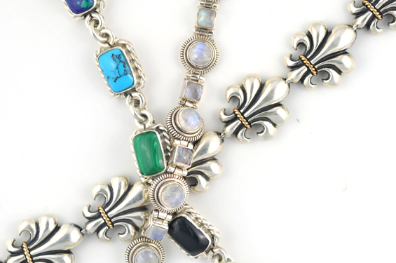 Description: In this lot we have eight miscellaneous sterling silver bracelets, some with gold accents and some with stones, weighing a total of 10.56 troy ounces.