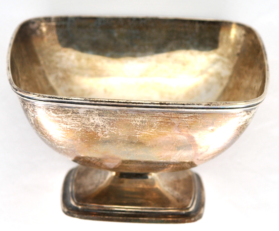 Description: This small, square bowl is made by J.E. Caldwell and measures 4.5” x 4.5” and sits 2.75” tall. The bowl is in good condition with no dents or scratches. 5.11 troy ounces.