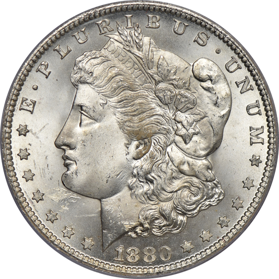 Description: Private D'z Collection. VAM-8 has a tiny dash beneath the second '8', and each 'C' in the mintmark has innumerable raised dots from die rust. A couple of contact marks strewn beneath the chin and at the lower neck appear to be the only obstacle to upgrade, as on balance, the invigorating frothy presence and white brilliance suggest the gem level quite easily. Superb production brought up most all of the details, leaving only a few planchet striations positioned diagonally over the ear area.
