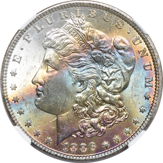 Lot Title: Three 1886 MS-63, MS-64 Star, and MS-65, all NGC CACCAC