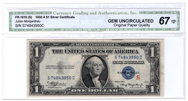 Lot Title: 1935-A "S" Fr# 1610 - CGA GemCU-67