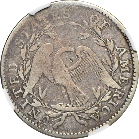 Description: Overton-119 can be readily attributed once the die lump just above the fifteenth star is discovered. The NGC "scratches" disclaimer simply has to be some kind of mistake, as there are a few adjustment marks at the bottom of the reverse, and an occasional hairline scratch, but these are entirely in keeping with common-sense grading standards. There are a few superficial linear scrapes in the obverse right field, but good luck finding them without patience. Far nicer than the NGC "grade" leads one to believe.