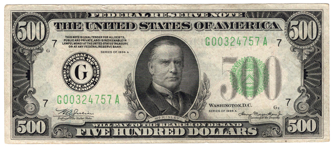 Lot Title: 1934-A $500 Chicago Fr# 2202-G - XF
