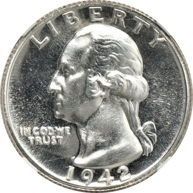 Description: Pristinely preserved issues that boast highly reflective surfaces free from detractions fill this five piece 1942 United States proof set from start to finish. NGC has certified each issue as PR-65 with the only exception being the Lincoln cent that has been graded as PR-64RD. A truly diverse mixture of fiery reds, steely greys, and blast whites make this PQ set for this particular year of issue (ck).