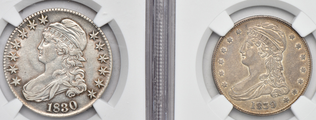 1830 Large 0 AU-50, and an 1839 Capped XF-45, both NGC