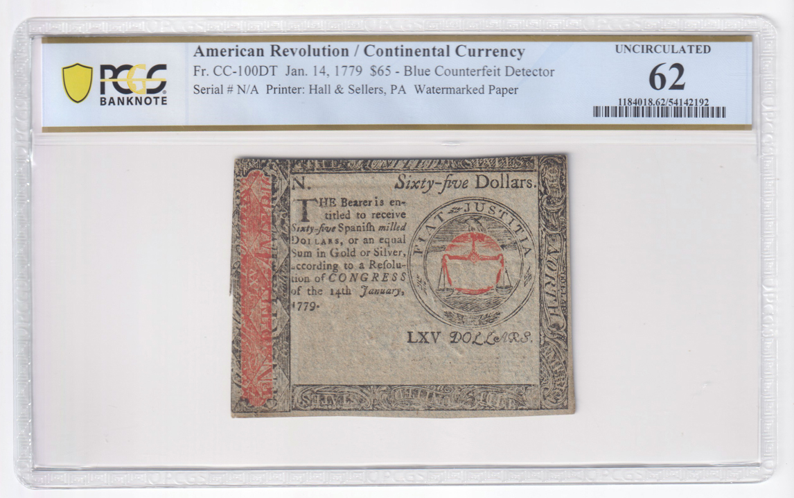Lot Title: January 14, 1779 $65 Fr# CC-100DT - PCGS CU-62