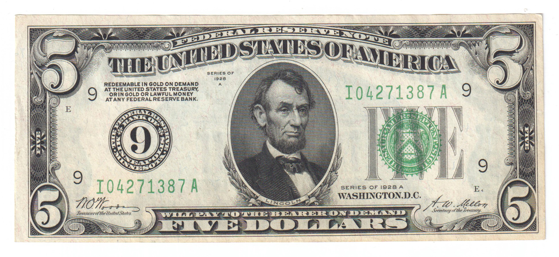Lot Title: 1928-A $5 Minneapolis Fr# 1951-I - AU