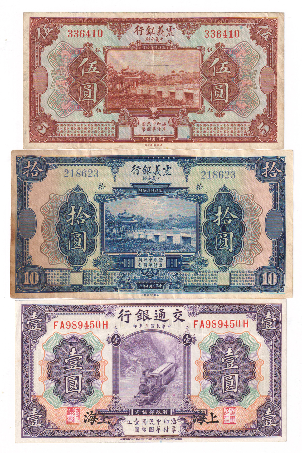 Description: A series of depictions that includes boats, trains, and bridges are included within this lot of eight Chinese bank notes. Within this lot are notes from various denominations that range from 5 Yuan to 100 Yuan. A truly colorful display that is sure to grab the attention of nearly any collector of the type (ck).