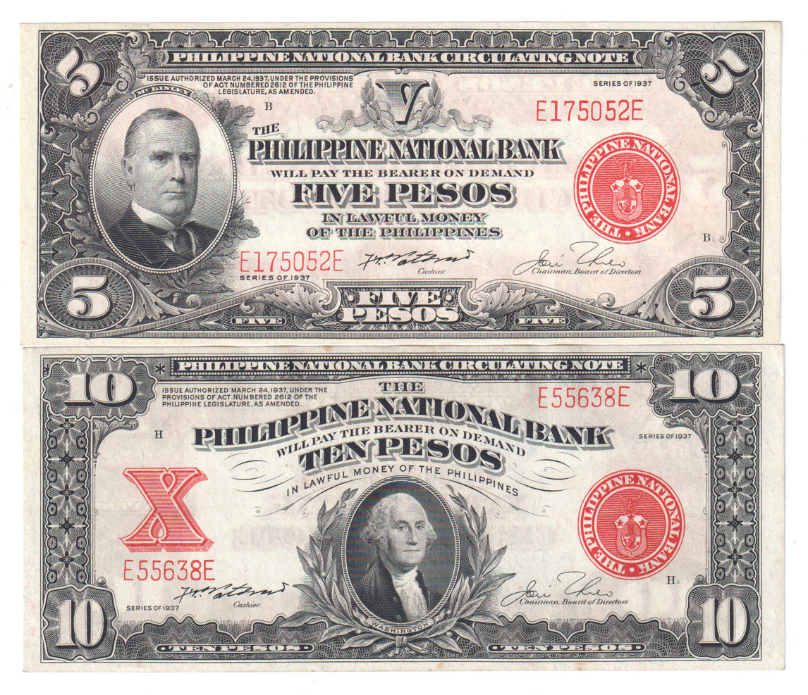 Description: Vibrant colors and full borders are readily apparent when looking at this four piece lot of Philippine Pesos notes. There are two raw examples that includes a 1937 5 Peso and a 1937 10 Peso. The final two pieces includes a PMG VF-25 1924 10 Peso and a PCGS Currency VF-35 50 Peso issue. A nice variety within this singular type (ck).