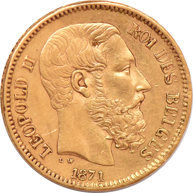Lot Title: Belgium - 1871 20 francs with split planchet