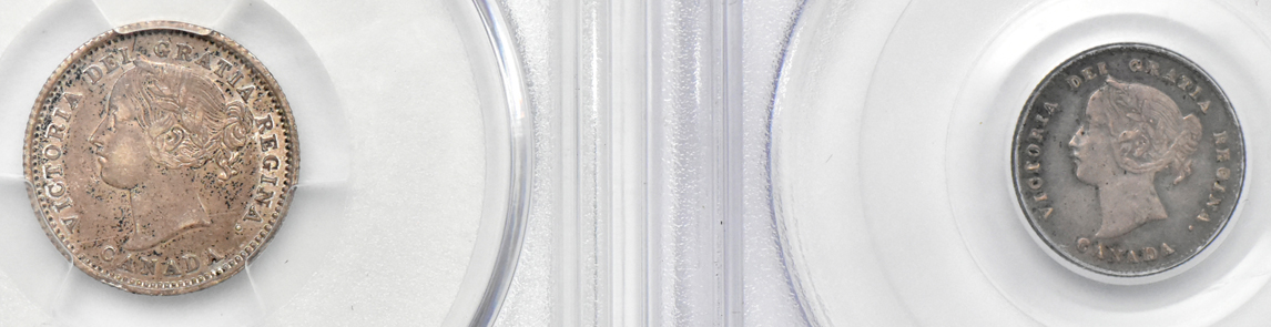 Description: PCGS has certified each example within this quartet of 19th century Candain silver pieces that includes an 1872-H 5C XF-45, an 1858 10C AU-55, an 1858 20C AU Details Cleaned, and an 1862 20C New Brunswick XF-45. Circulated surfaces sporting uniform wear and original toning gives this group lot the correct look for the era and type (ck).