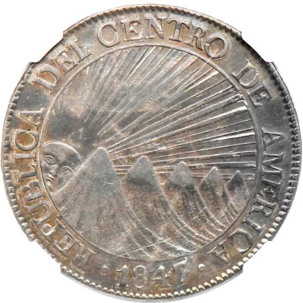 Lot Title: Central American Republic - 1847-NG A 8 reales - NGC AU-55