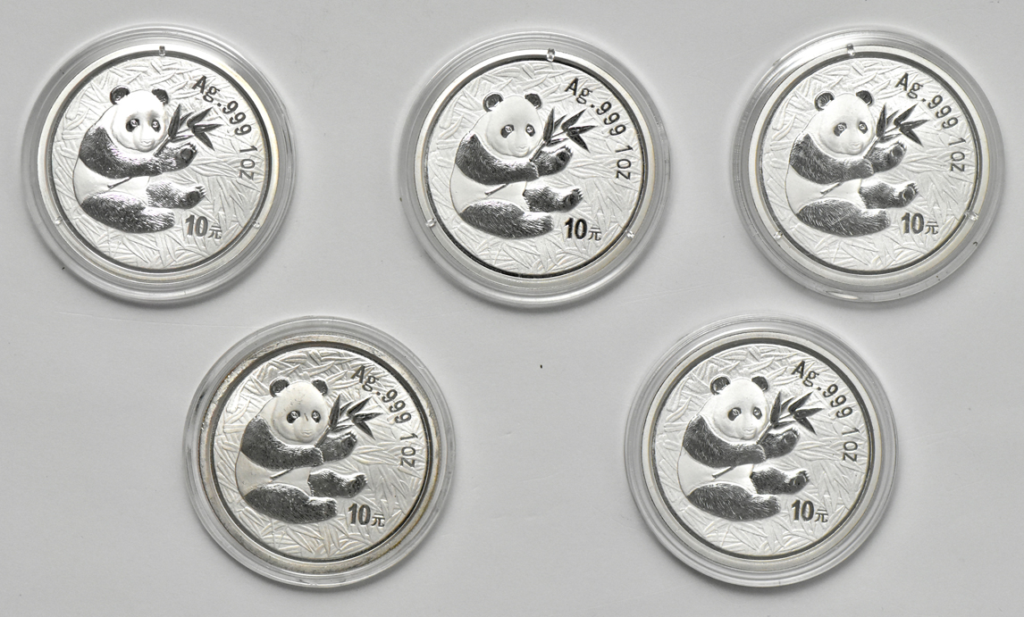 Lot Title: China - Five 2000 frosted ring 1oz silver Panda 10 yuan