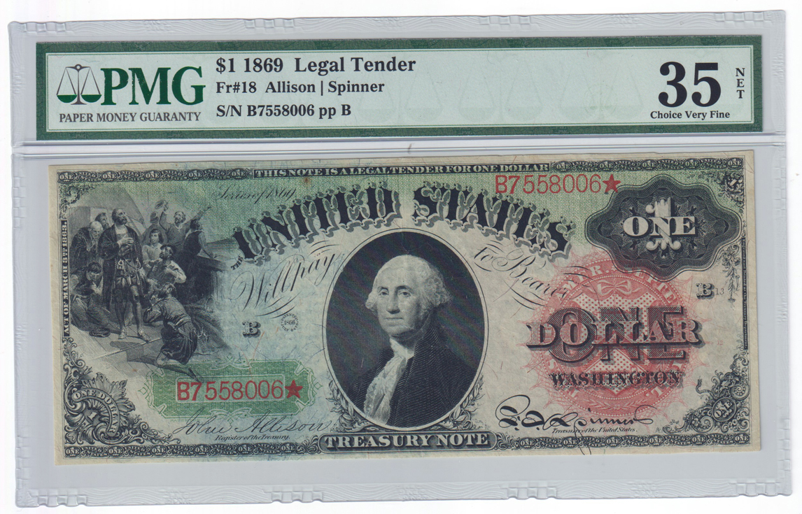 Lot Title: 1869 $1 Fr# 18 - PMG VF-35/rust
