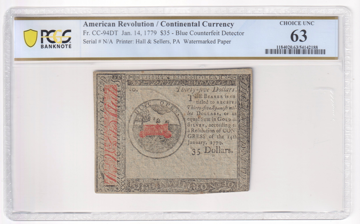 Lot Title: January 14, 1779 $35 Fr# CC-94DT - PCGS ChCU-63