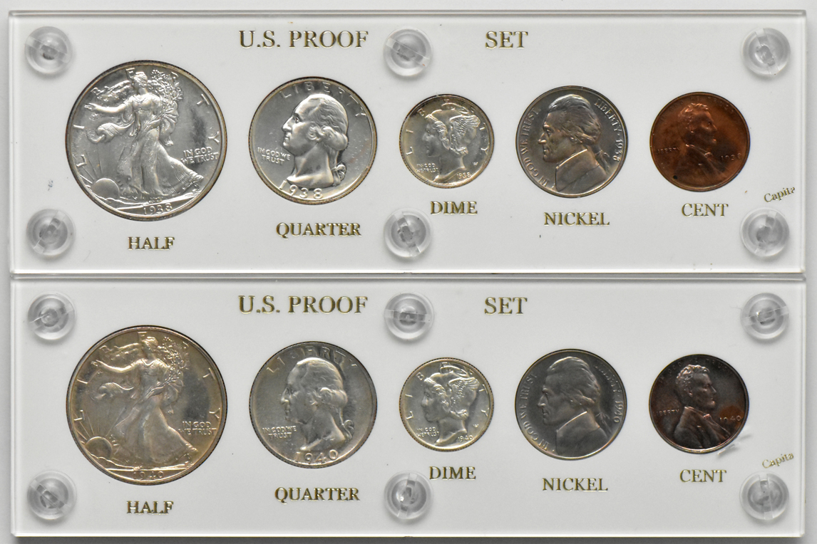 1938 and 1940 Proof Sets in Capital Plastics holders