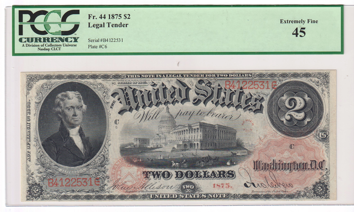 Lot Title: 1875 $2 Fr# 44 - PCGS XF-45