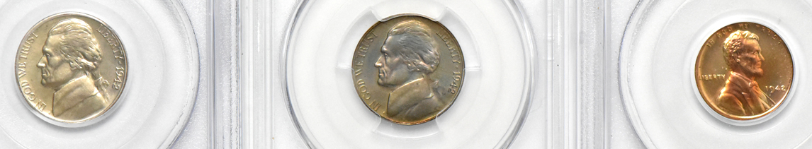 Description: All six issues of the 1942 United States proof set are present and accounted for within this PCGS certified group lot that includes a PR-65RD Lincoln cent, a 1942 Type 1 PR-67 Jefferson nickel, a 1942-P Type 2 PR-66 Jefferson nickel, a PR-67 Mercury dime, a PR-65 Washington quarter, and a PR-65 Walking Liberty half-dollar. Each example boasts original surface free from human interference, but the Walking liberty half-dollar appears to be very conservatively graded relative to the set (ck).