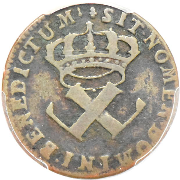 Lot Title: 1721-H French Colonies 9 deniers F-12, and a 1739-A French Colonies Sou Marque XF-45, both PCGS