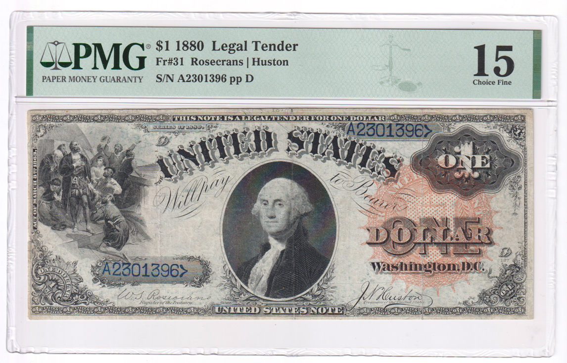 Lot Title: 1880 $1 Fr# 31 - PMG F-15/minor repairs/tape