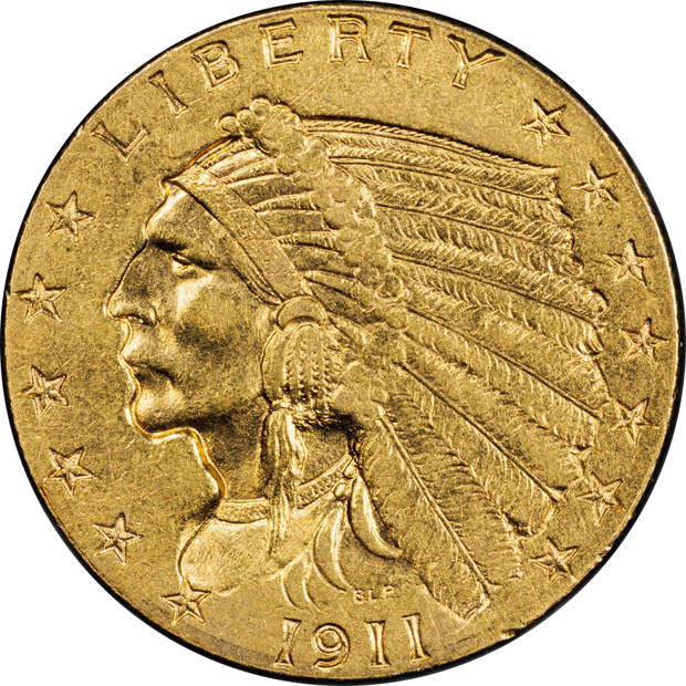 Description: A terrific, bold "D" mintmark pops up off the surface, validating the PCGS "strong D" annotation. While a decently struck quarter-eagle overall, the eagle's shoulder and the Indian's cheekbone and headband. Almost fully lustrous and oh-so-close to mint-state.