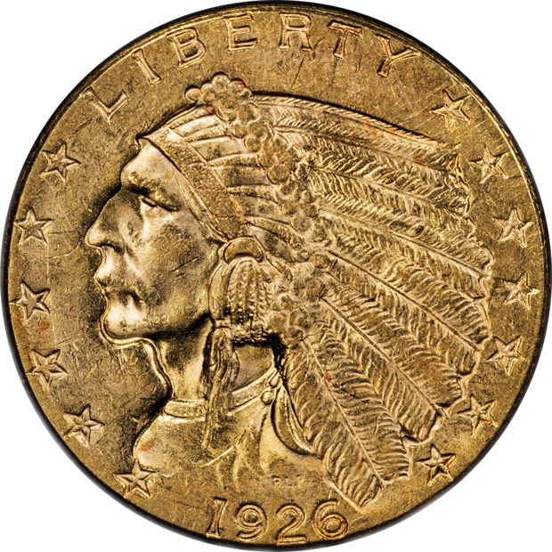 Description: Gleaming pale golden patina. The strike borders upon perfection and delivers a metric ton of luster compressed onto a tiny vista.