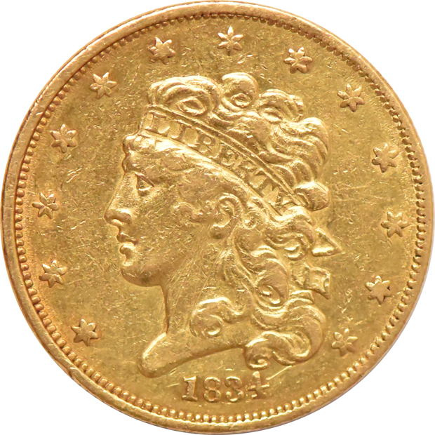 Lot Title: 1834 Classic, Plain 4 AU details/scratched, and an 1835 AU details/damaged