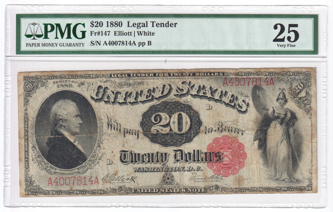 Lot Title: 1880 $20 Fr# 147 - PMG VF-25 stains