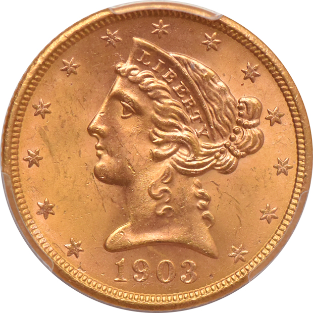 Description: For such a sparkling and beautifully struck example, it's no surprise that the "plus" suggests consideration for the gem grade level. The first two starts are a bit out of focus, while the all other design elements are
