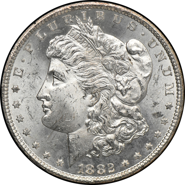 Description: A trio of common Carson City GSAs garners choice commendation from CAC. Included are: 1882-CC (coppery toning in desirable textile pattern envelops the entire reverse and both sides admit typical small abrasions), 1883-CC (above average quality while showing a splatter of russet on the reverse left), and 1884-CC (a brief flash of pale rainbow toning zips across the bottom obverse). The Scotsman Cataloger's Choice Award has never in the last 20+ years applied to a multi-coin lot, but the 1882-CC would be easy to miss out on given that the textile pattern is relegated to the reverse, but enthusiasts who pursue such ultra-original bag hoard survivors deserve a call-out for this three coin lot.