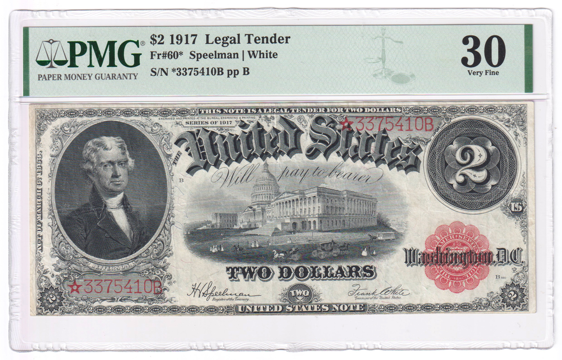Lot Title: 1917 $2 Star Fr# 60* - PMG VF-30
