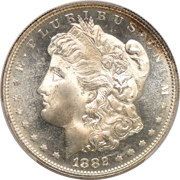 1882-S MS-65, and an 1887 MS-64DMPL, both PCGS