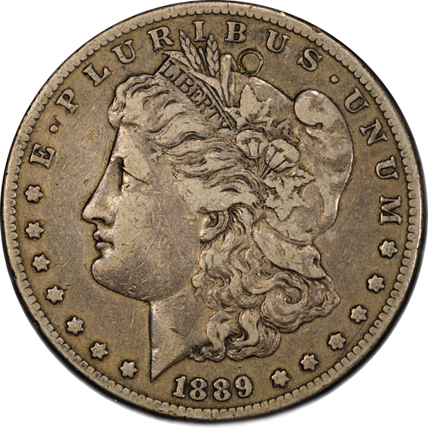 Description: The quality of what would have been a fabulous (for VF) Carson City dollar gets tainted by a curious round punch atop the portrait. Absolutely no other transgression occurs for an uncommonly smooth example.