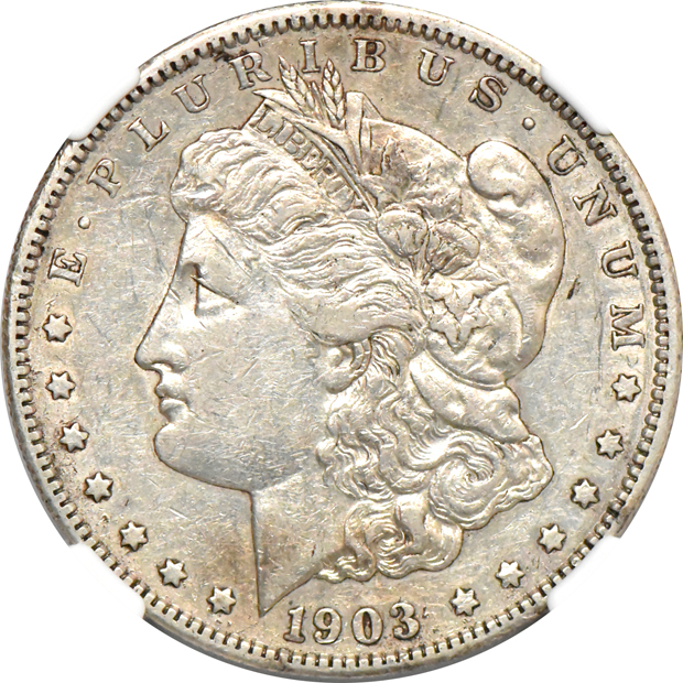 Description: First is an unattributed 1903-S (noticeable luster for only XF-40, and endowed with pleasing eggshell-grey patina over no-problem surfaces). Accompanying is 1903-S VAM-2 (smoothly worn and the NGC “obverse damage" notation is completely uncalled-for -- an exaggeration of three prominent surface nicks). Two coin lot.
