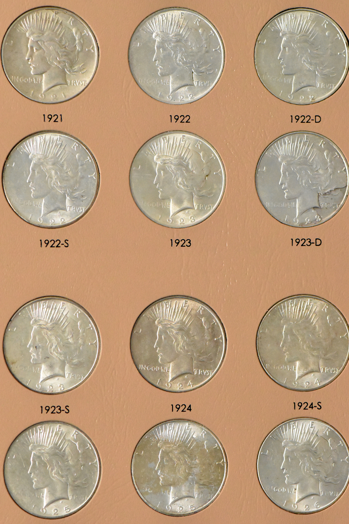 Lot Title: Collection of Peace dollar in a complete Dansco 7175 album