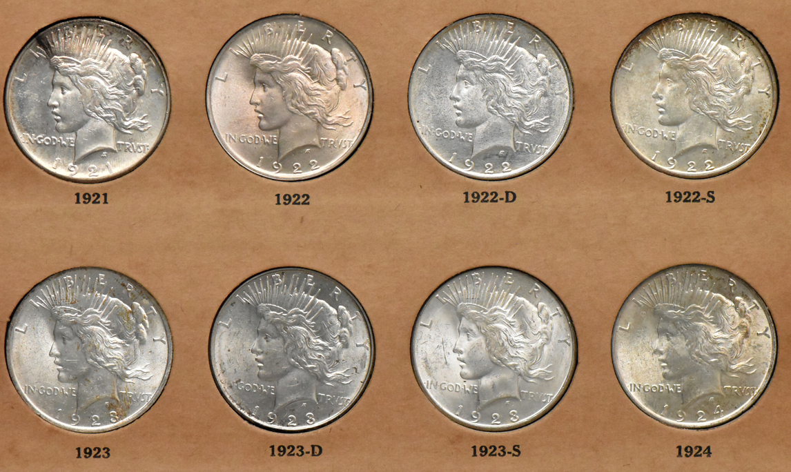 Lot Title: Collection of Peace dollars in a complete Wayte Raymond album