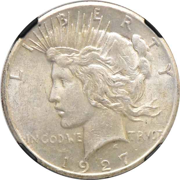 Description: A curious admixture of traditional and "nu" grading make this an intriguing trio. Included are: 1927 cataloger's grade: [AU-50] (substantial luster over silver-grey surfaces and limiting bagmarks just enough to avoid a silent net grade), 1934 cataloger's grade: [MS-62] (pleasing original surface quality proven by the presence of a couple or so carbon spots on the reverse), and 1934-S (the jewel of this lot as both sides promote extensive luster and show zero unacceptable abrasions for the choice level). Three coin lot.