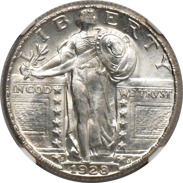 Description: Continuously, it appears more and more difficult to procure generally all white Standing Liberty quarters at the gem-level. Only lacking the necessary strike in head details to achieve "FH," hardly any considerable critique can be critique can be applied to this simeltaneously frosty and lustrous specimen.