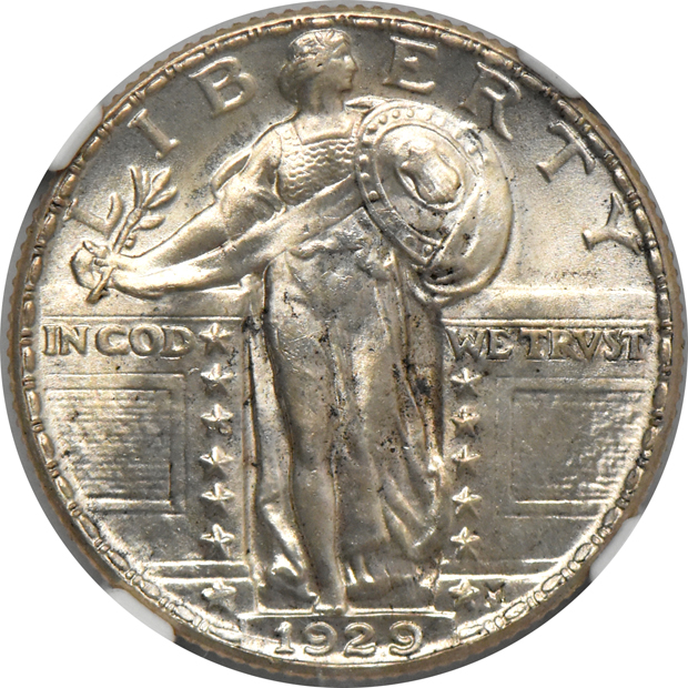 Description: NGC has suitably graded a pair of late-date Philadelphia Standing Liberty quarters with full head sharpness. Intensely frosted silvery luster permeates 1929, and the surface shows zero mentionable marks along with an occasional splash of carbon to suggest a nicely original surface. If anything, 1930 may even more original as splendid steam-grey almond-grey patina diffuses underlying luster and takes on an occasional speckle of tobacco toning. Two coin lot.