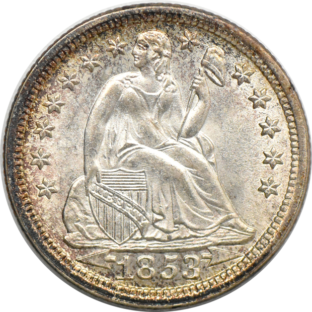 Description: Cataloger's grade: [ex-NGC MS-65]. A tremendous type coin with extensive mint frost, the candescent almond-white luster features meaningful rim toning on both sides. Despite a lightly cracked obverse die, fabulous detailing only adds to gem appeal.