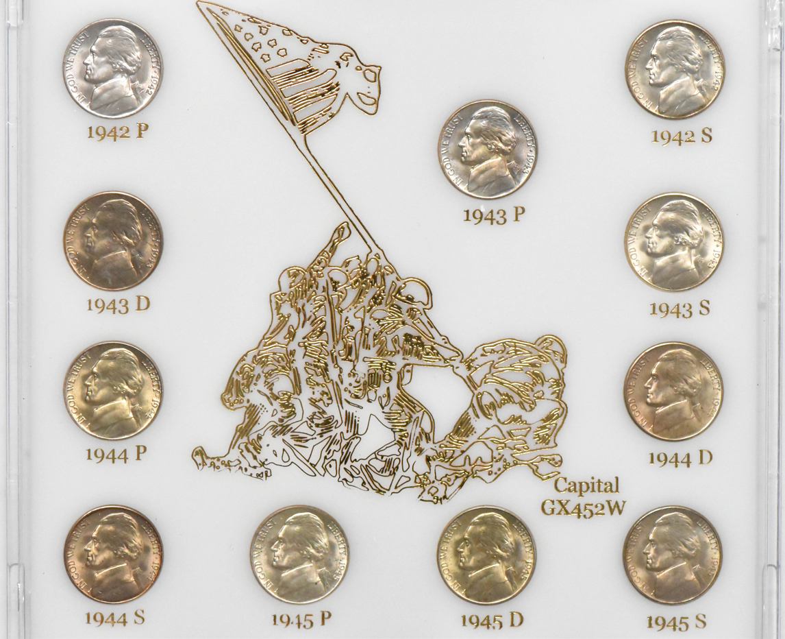 Lot Title: Two complete collections of War nickels in Capital Plastics holders
