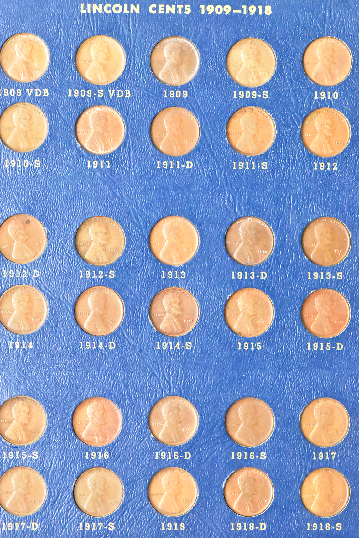 Lot Title: Collection of 84 Lincoln cents, 1909 through 1940-S (missing 1922 plain), in a Whitman 9405 album