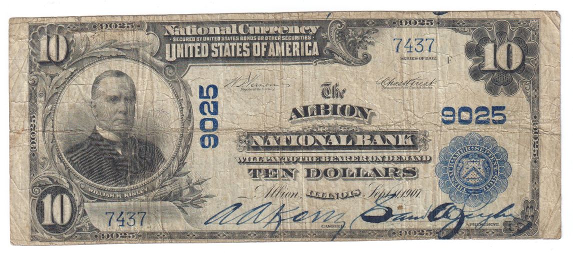 Lot Title: 1902 $10 Blue Seal - Albion, IL Charter #9025 - VG